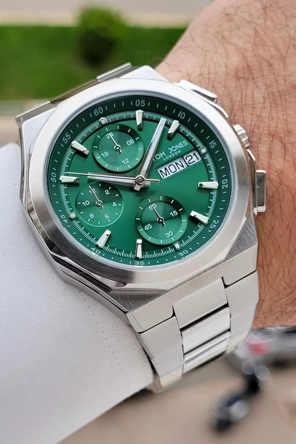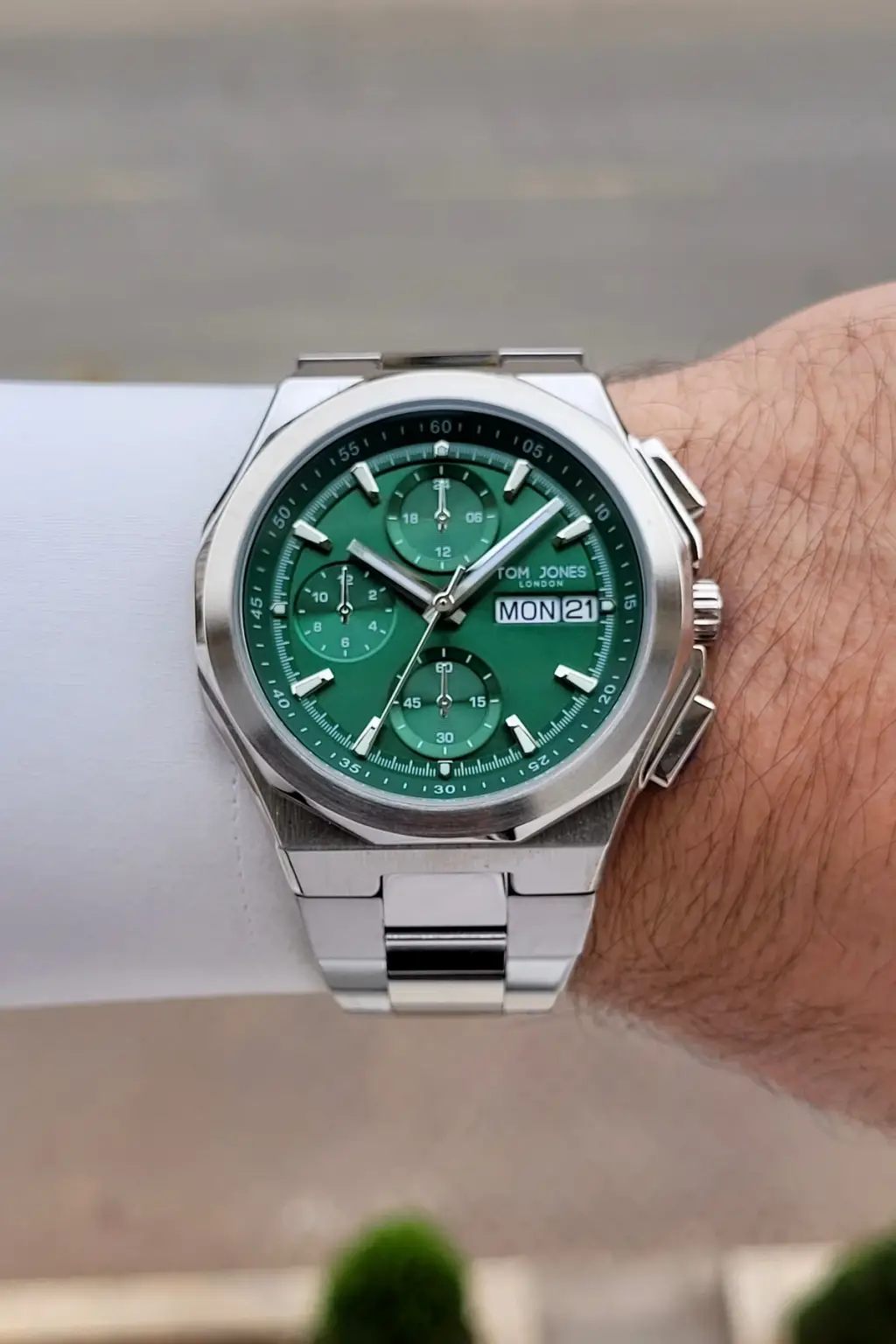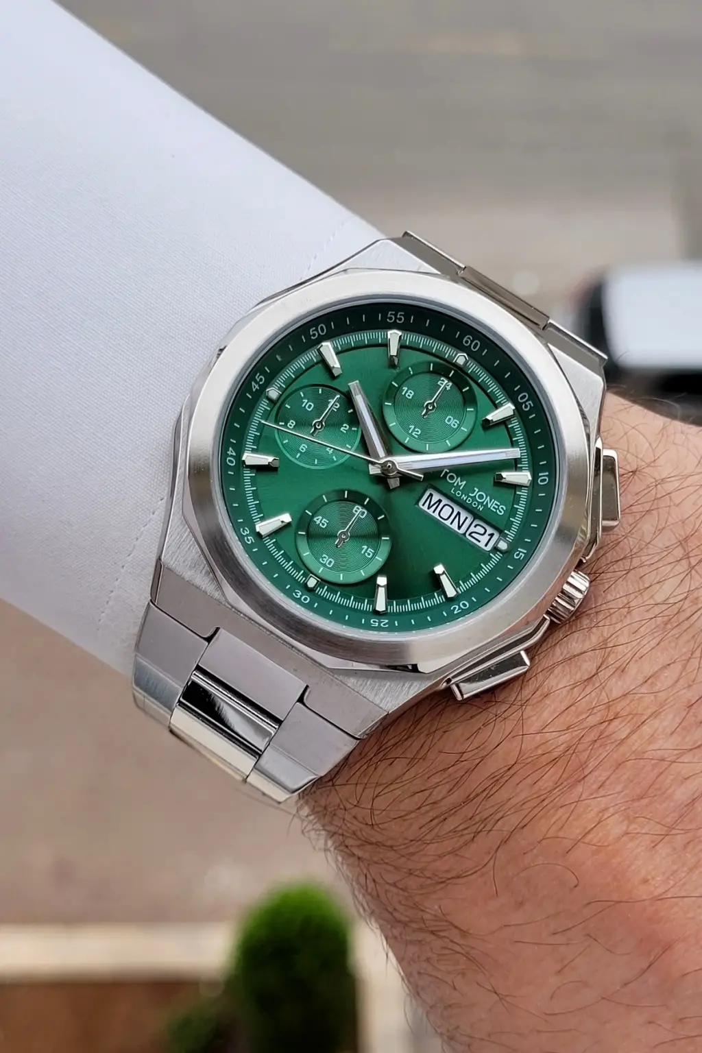 Kadranı Yeşil Kordonu Gümüş Renk 44 mm Erkek Kol Saati