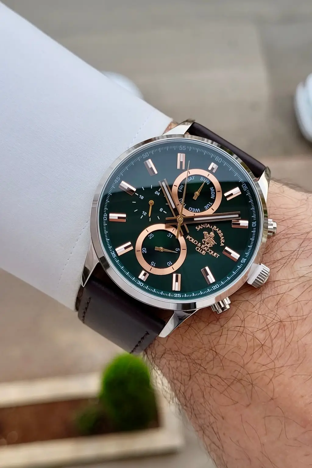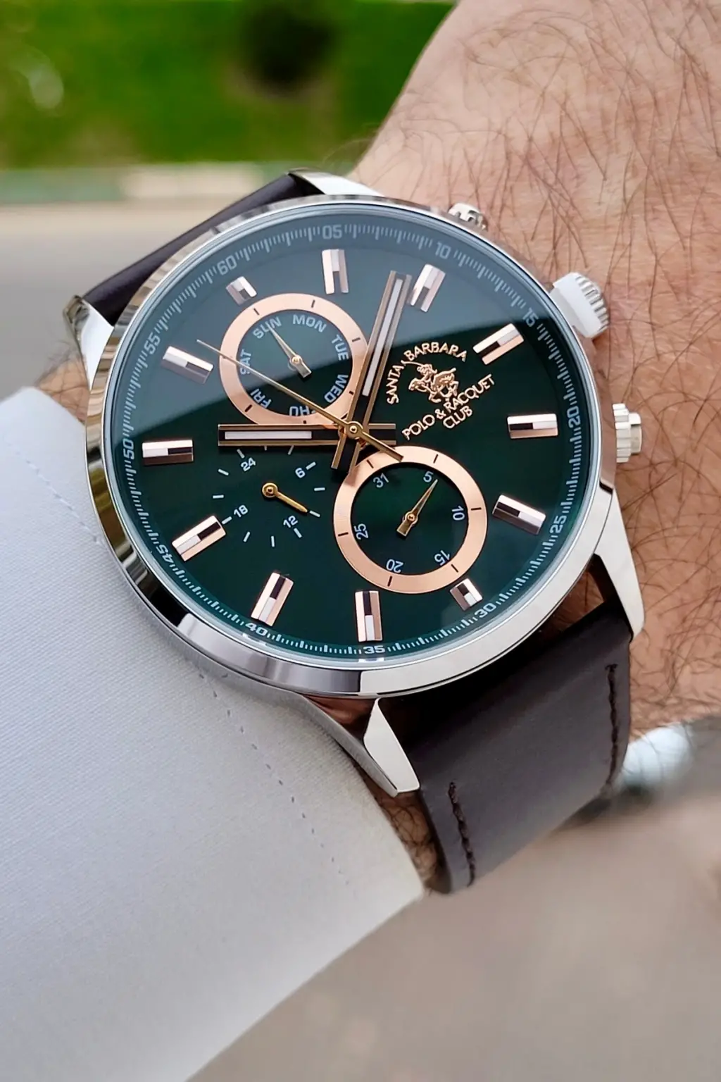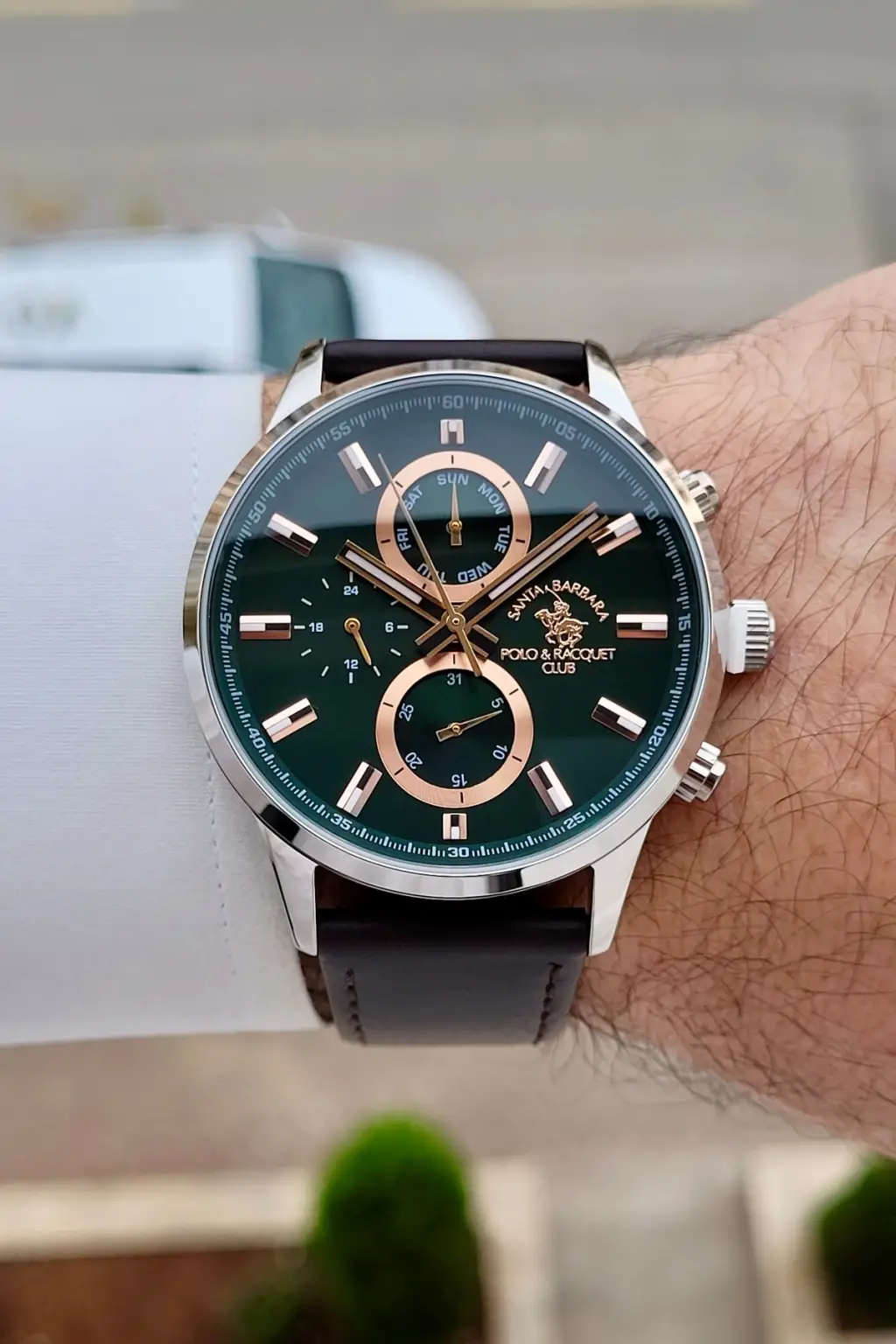 Kadranı Yeşil Kordonu Kahverengi Renk 44 mm Erkek Kol Saati