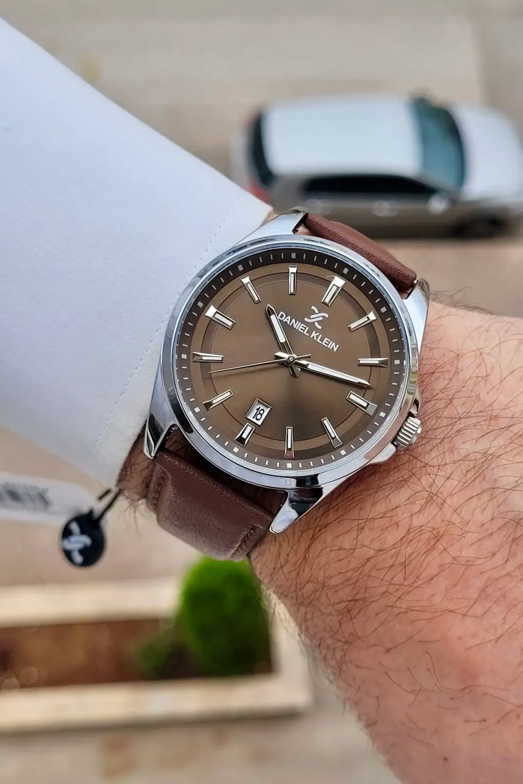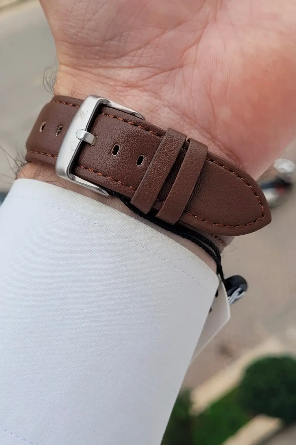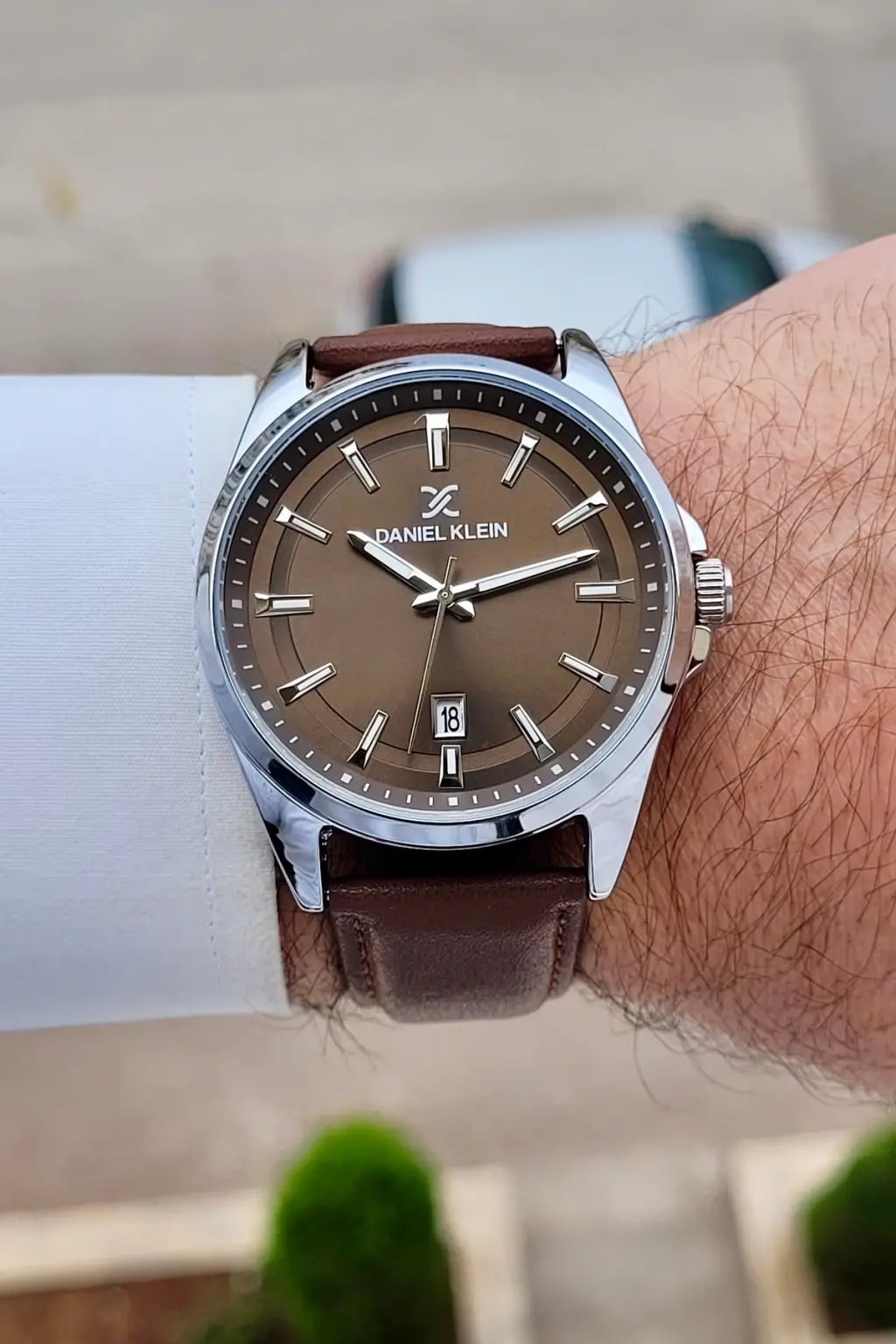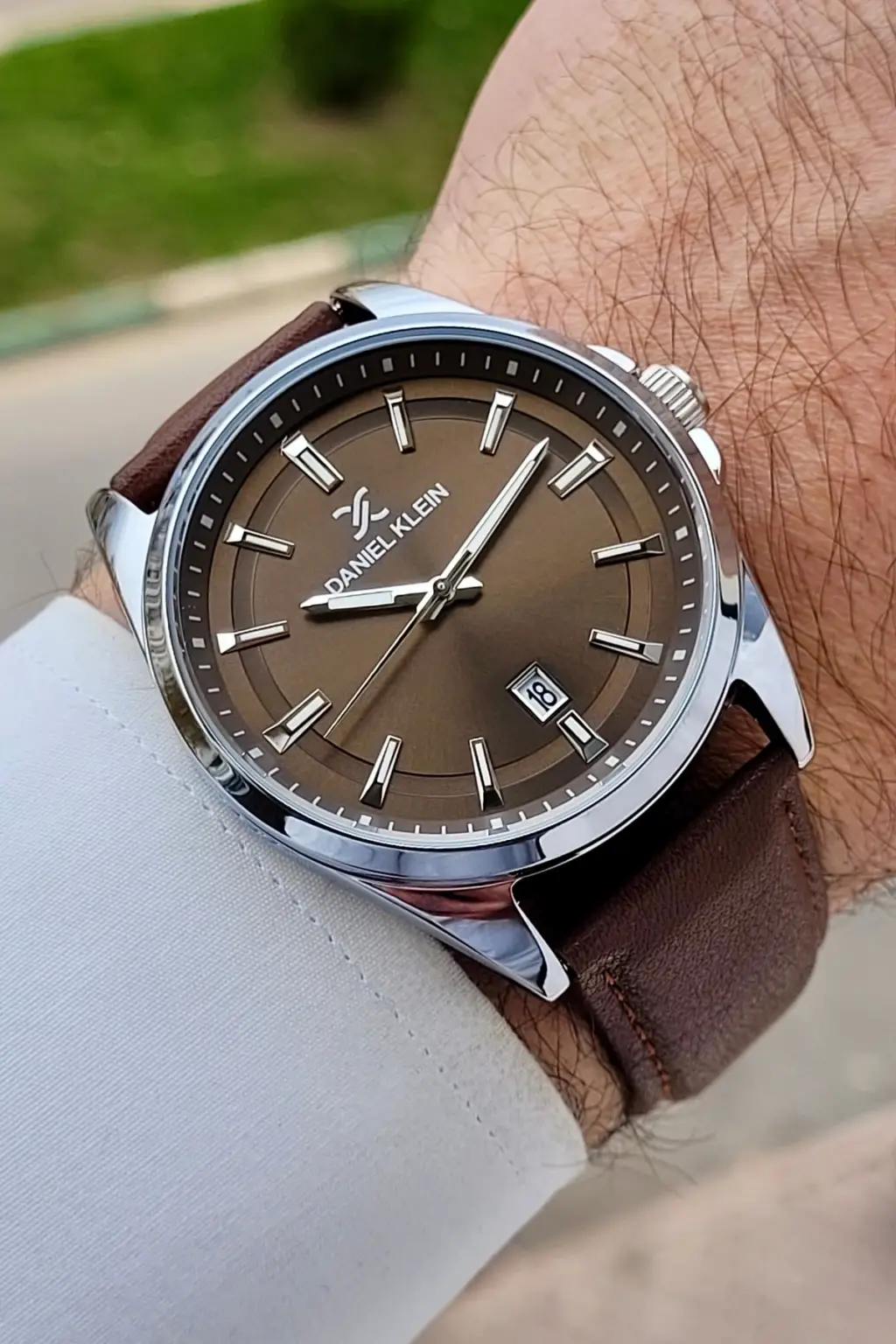 Kasası Gümüş Kordonu Kahverengi Renk 42 mm Takvimli Erkek Kol Saati