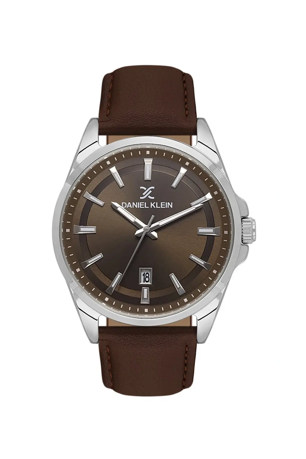 Kasası Gümüş Kordonu Kahverengi Renk 42 mm Takvimli Erkek Kol Saati
