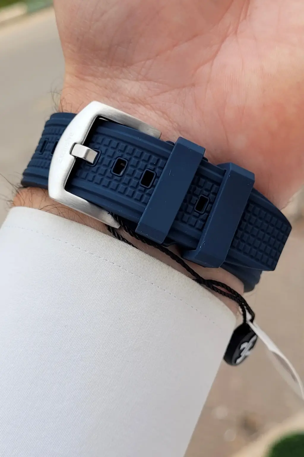 Kasası Gümüş Kordonu Lacivert Renk 44 mm İç Göstergeleri Aktif Erkek Kol Saati