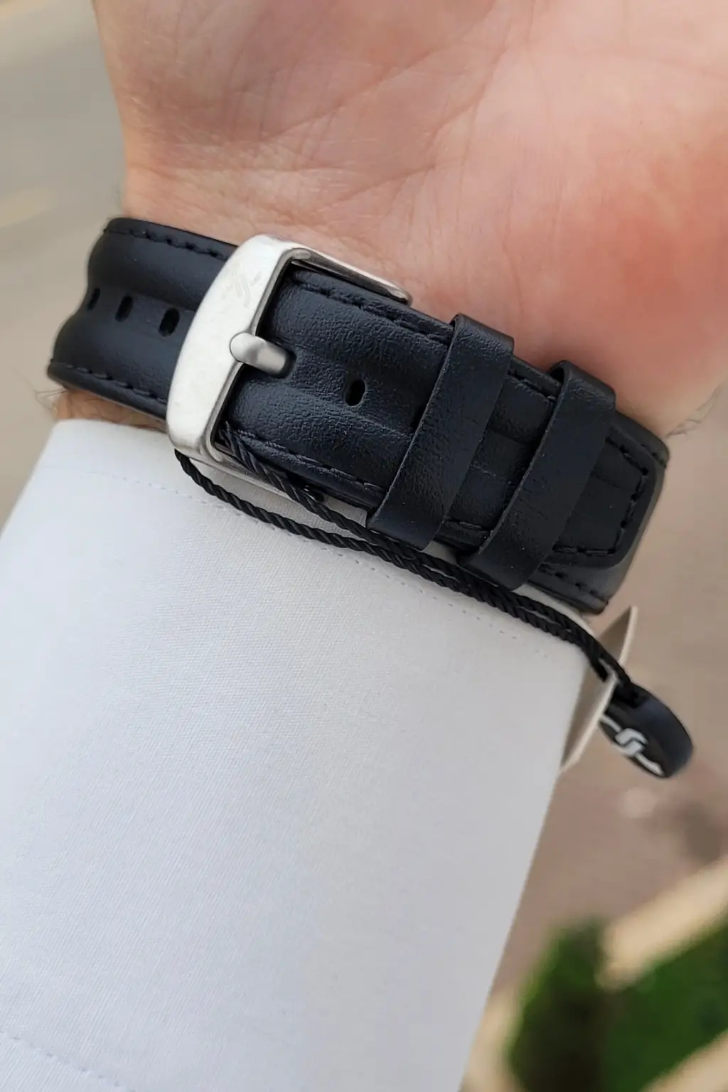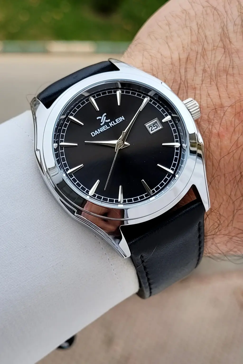 Kasası Gümüş Kordonu Siyah Renk 42 mm Takvimli Erkek Kol Saati