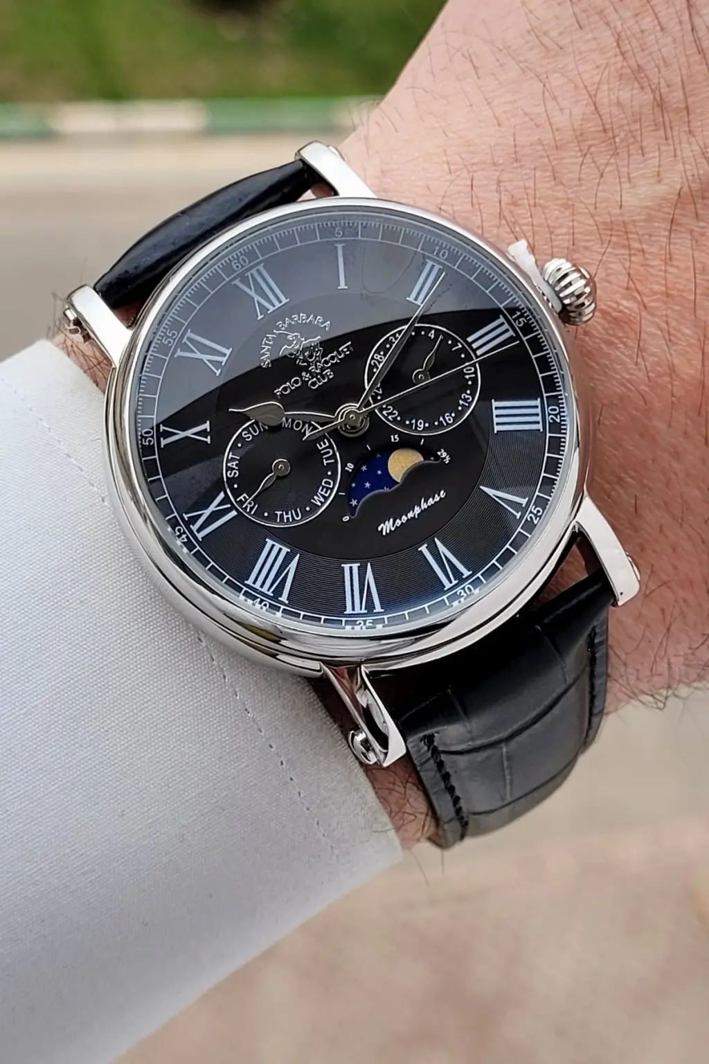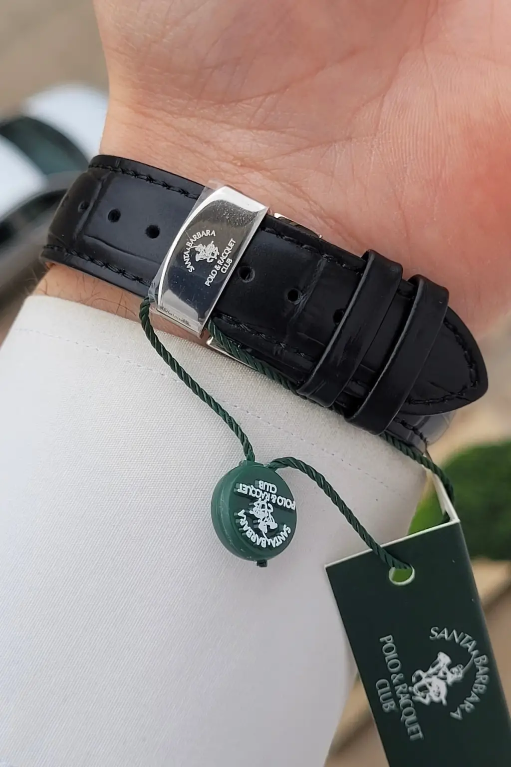 Santa Barbara Polo & Racquet Club Kasası Gümüş Kordonu Siyah Renk 42,5 mm Erkek Kol Saati