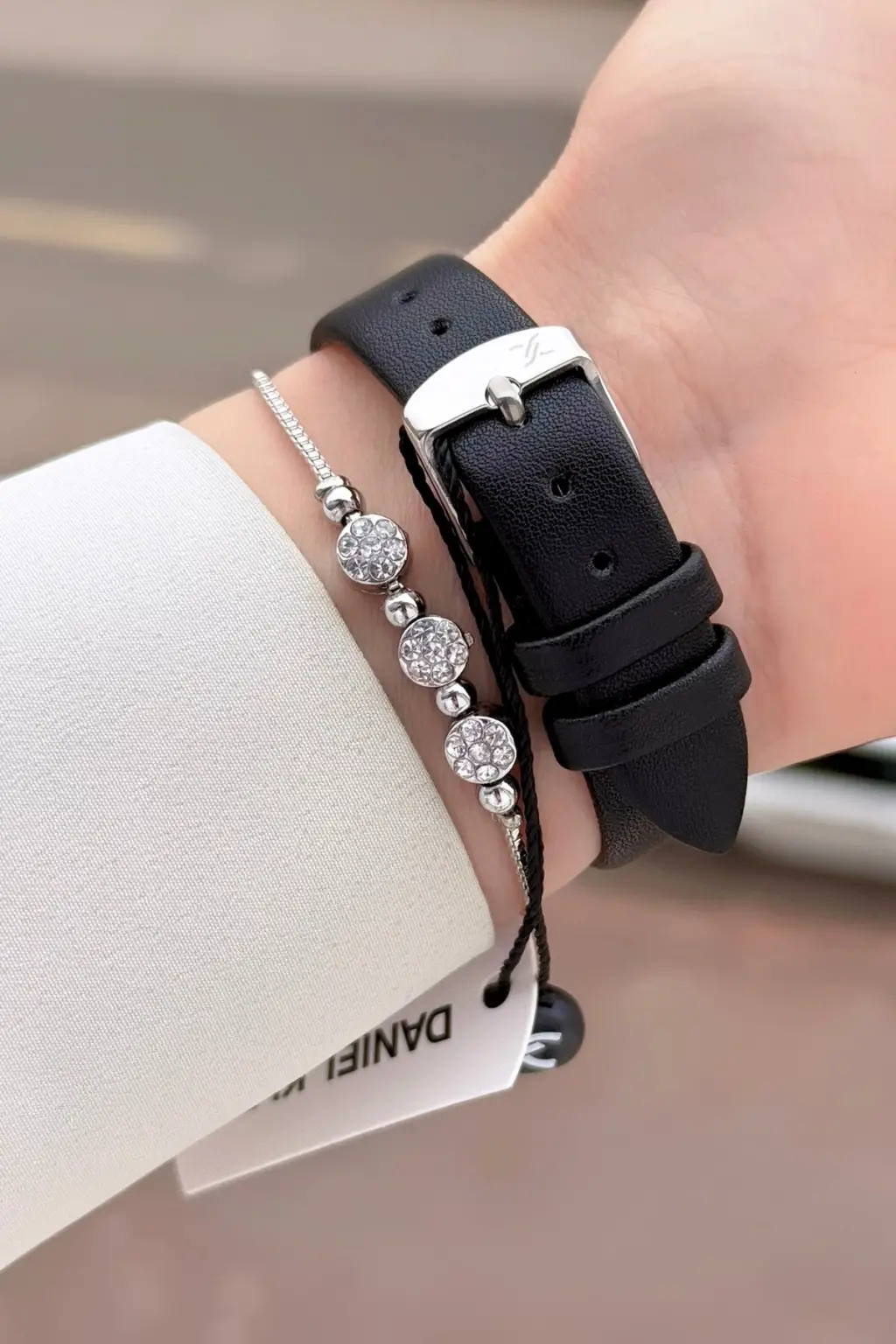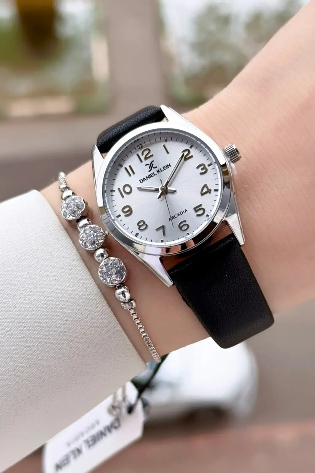 Kasası Gümüş Kordonu Siyah Renk Rakamlı Hediye Paketli Kadın Kol Saati ve Bileklik