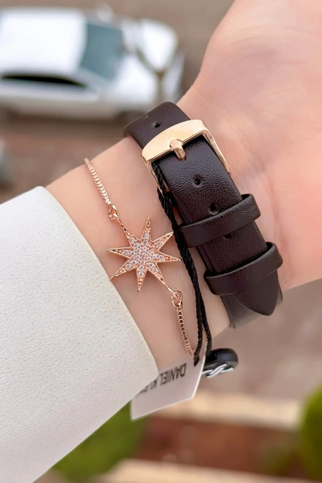 Kasası Rose Kordonu Koyu Kahverengi Renk Hediye Paketli Kadın Kol Saati ve Bileklik