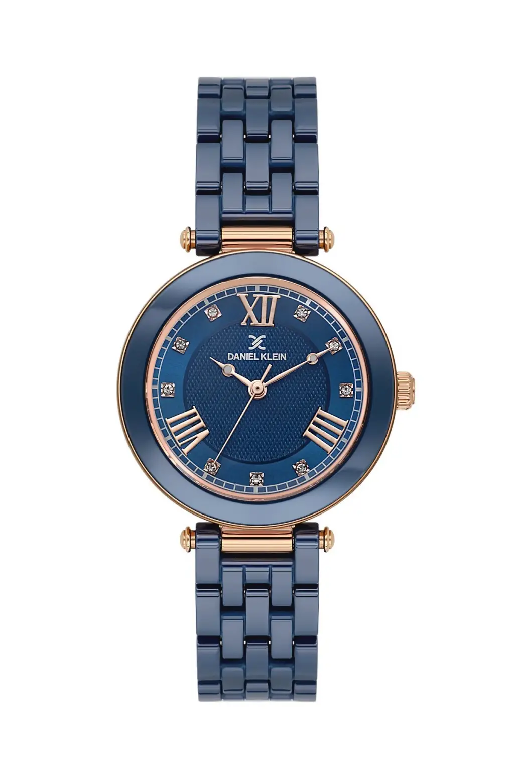 Kasası Rose Kordonu Lacivert Renk 32 mm Seramik Kadın Kol Saati ve Bileklik