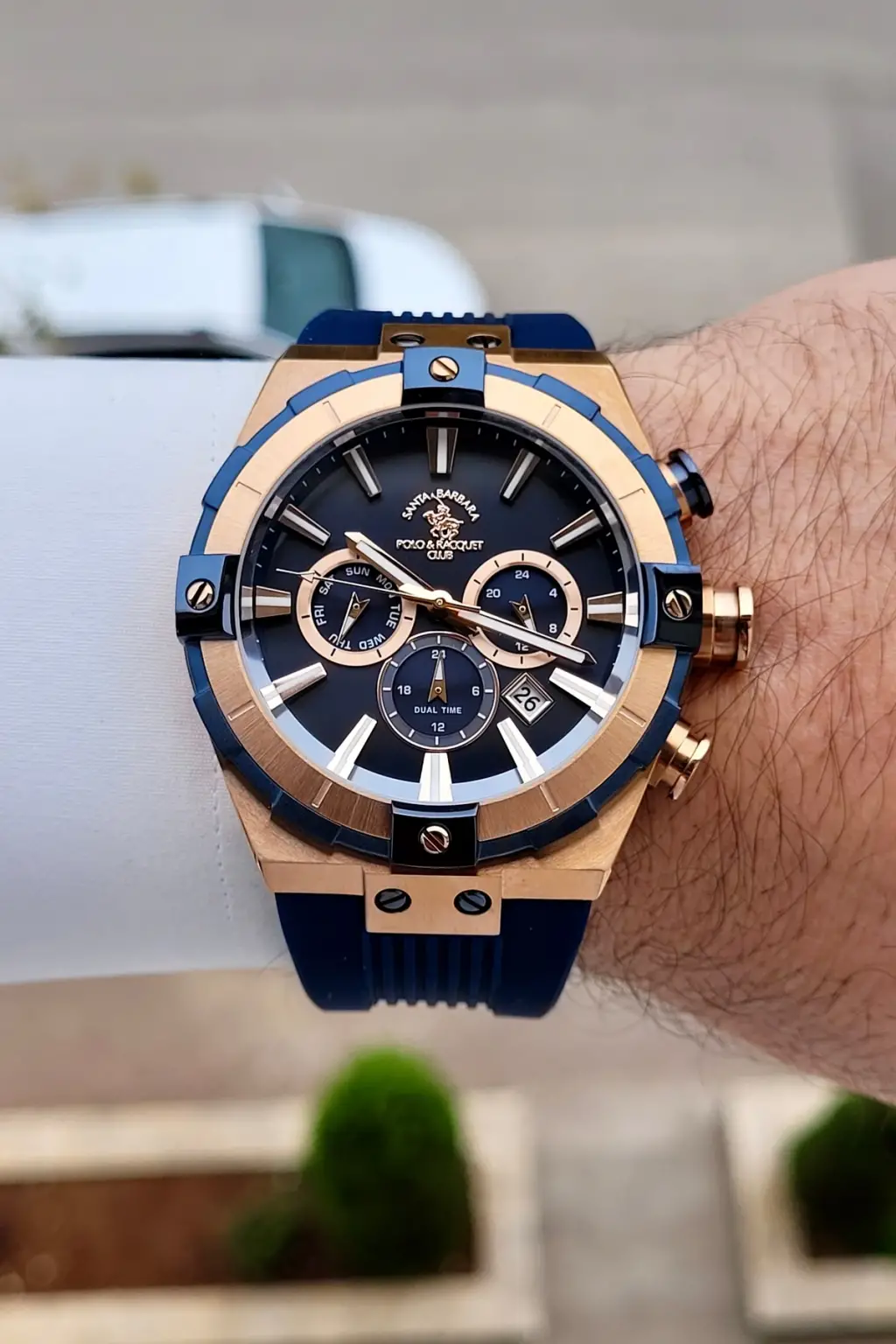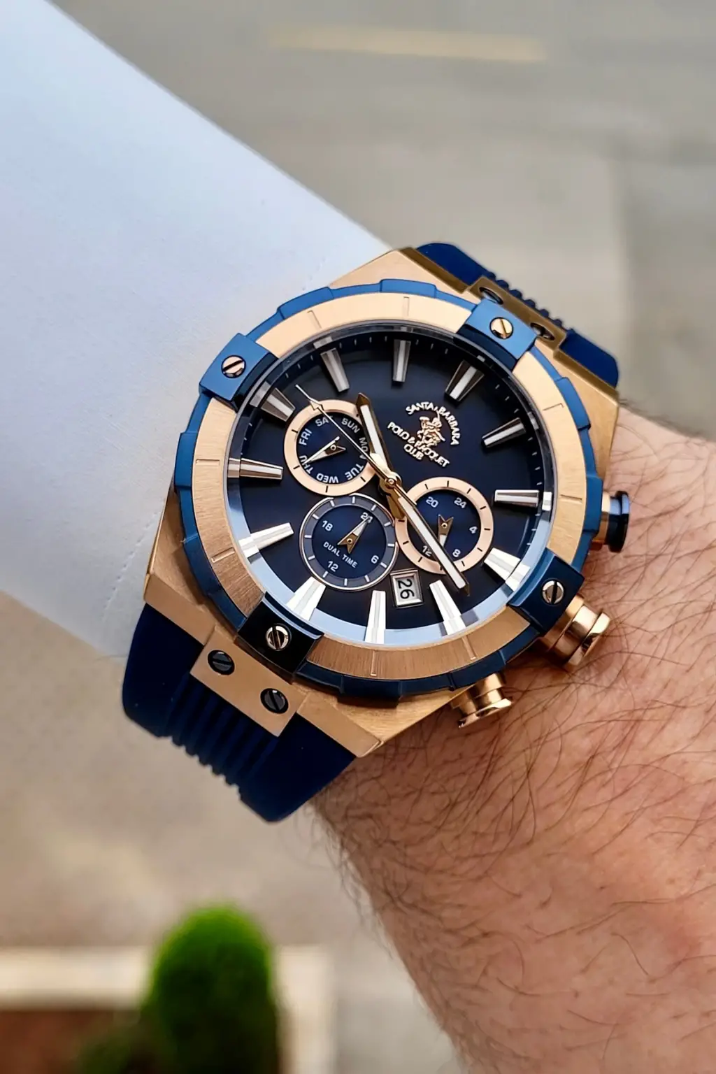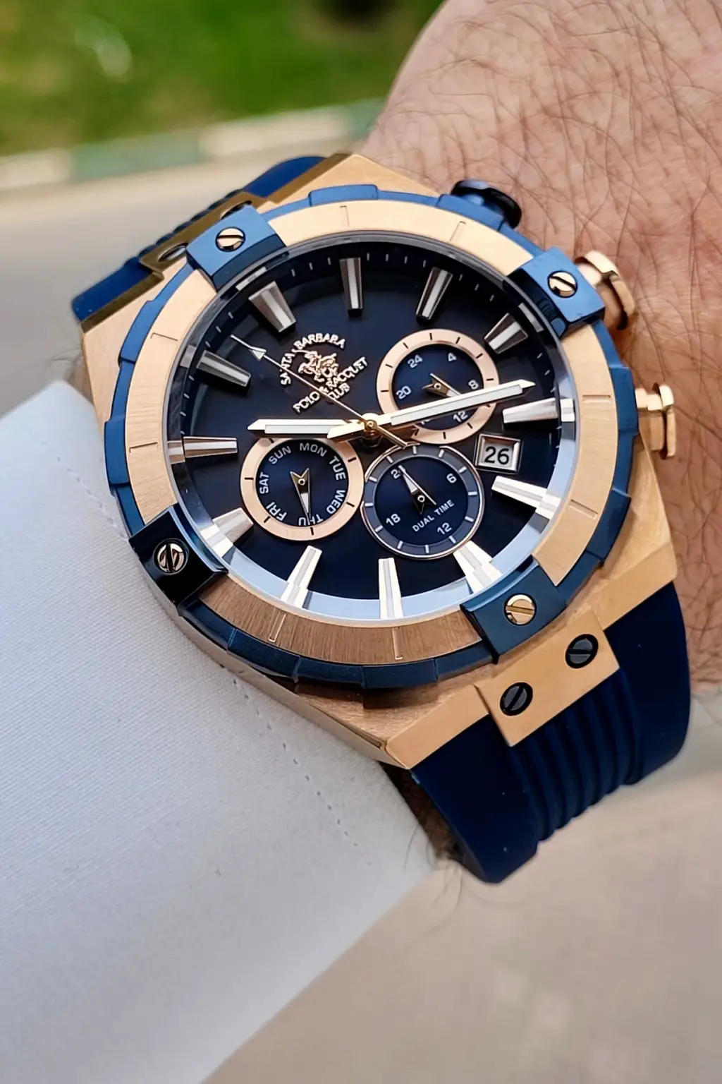 Kasası Rose Kordonu Lacivert Renk 45 mm Renk Atmaz Çelik Kasa Erkek Kol Saati
