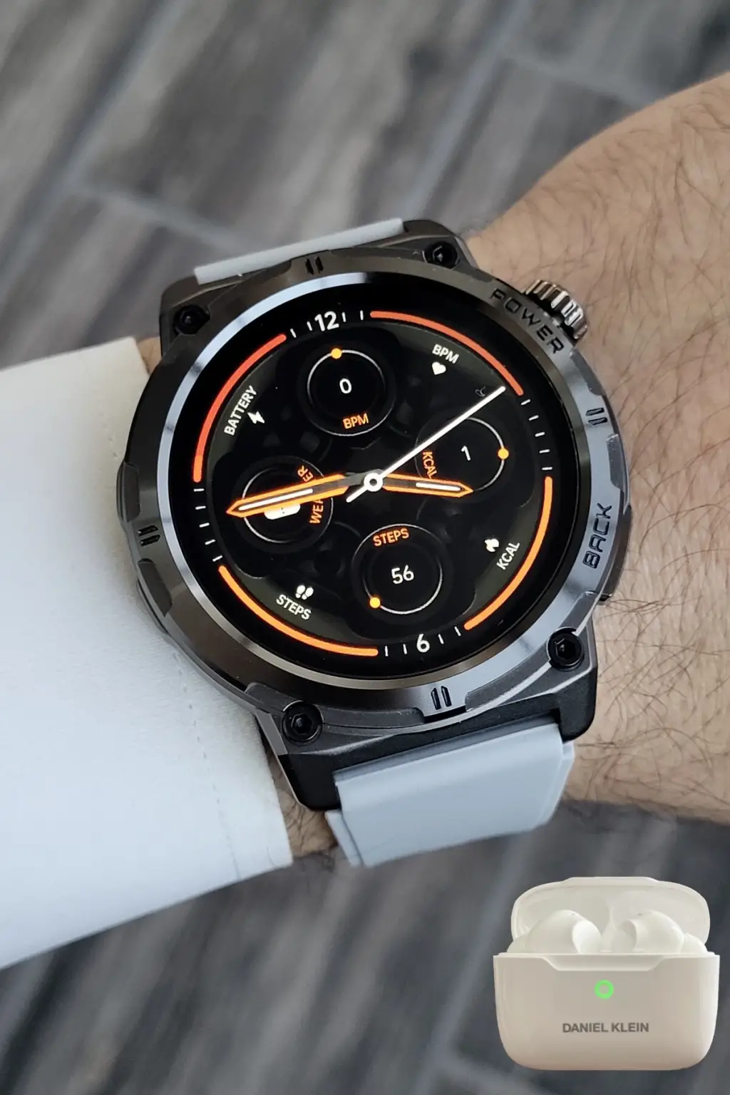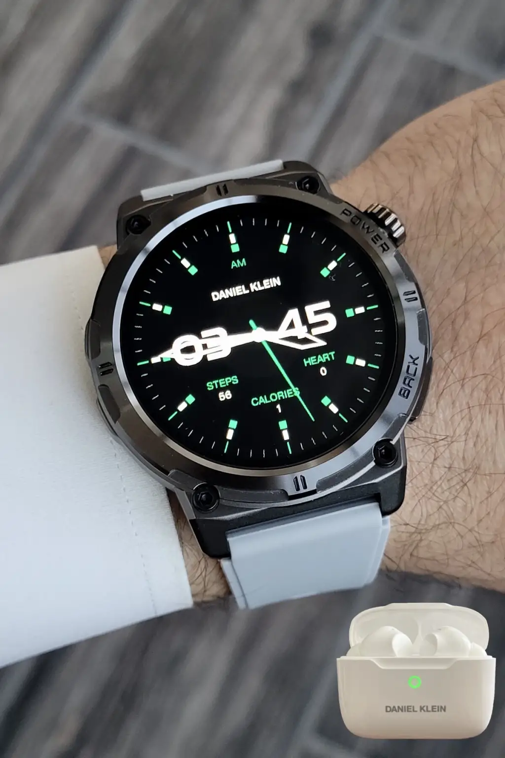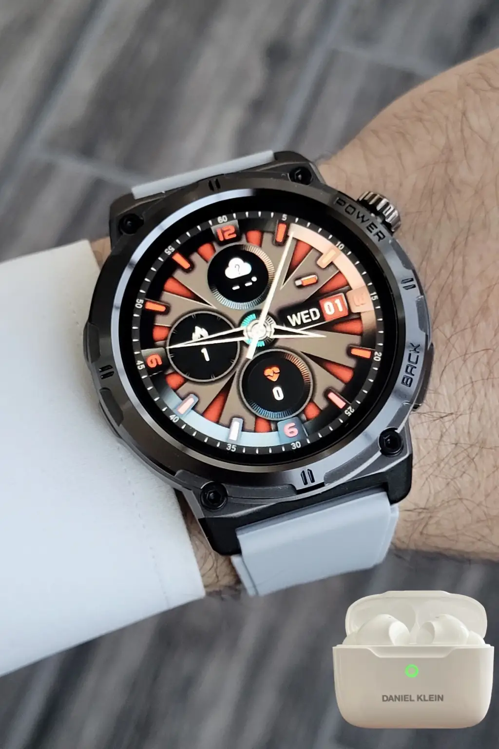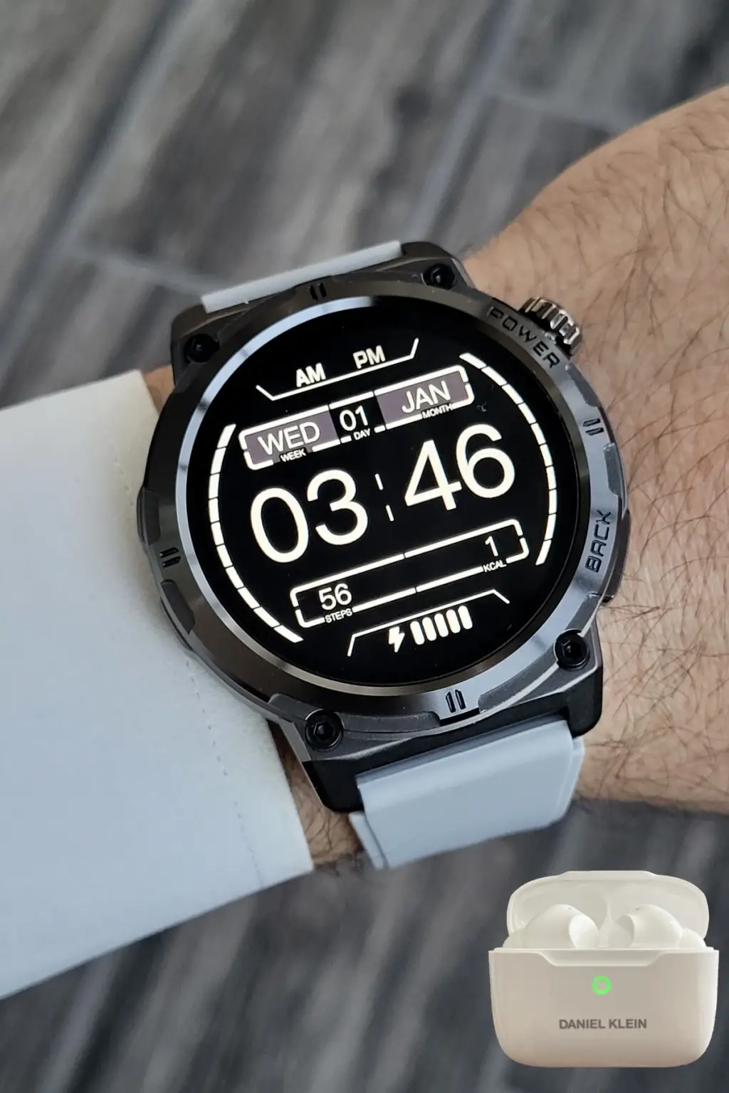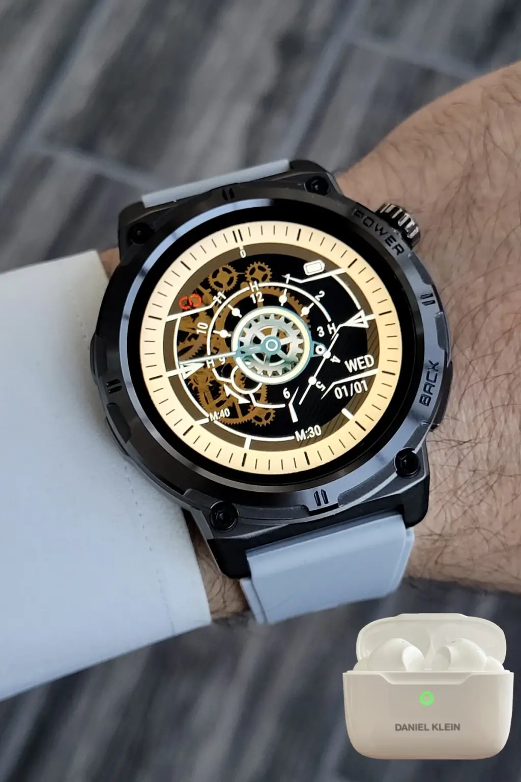 Kasası Siyah Kordonu Gri Renk Akıllı Saat ve Bluetooth Kulaklık
