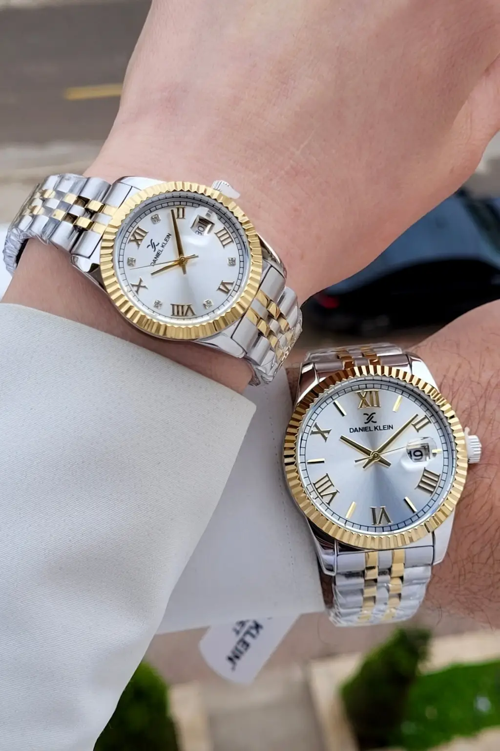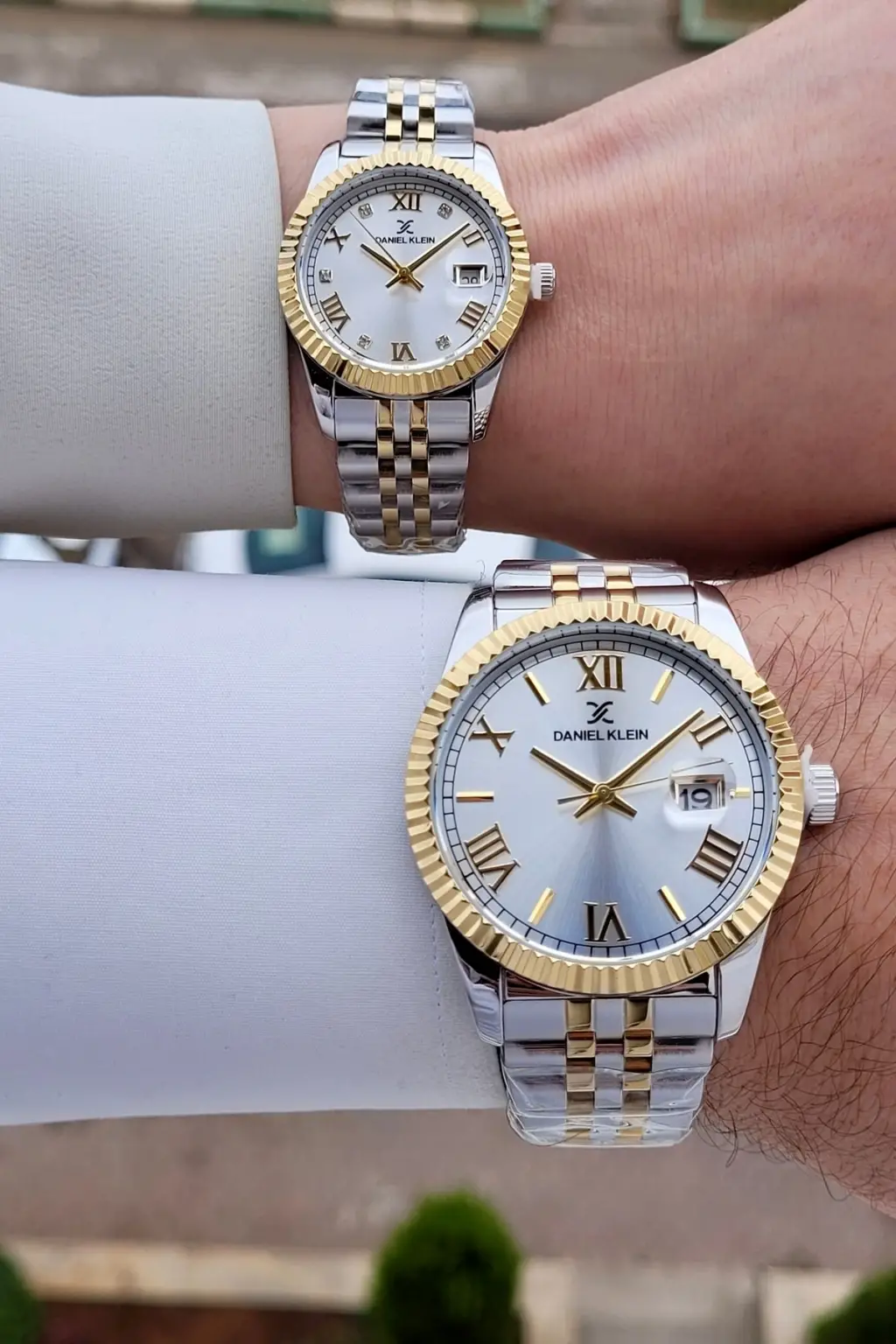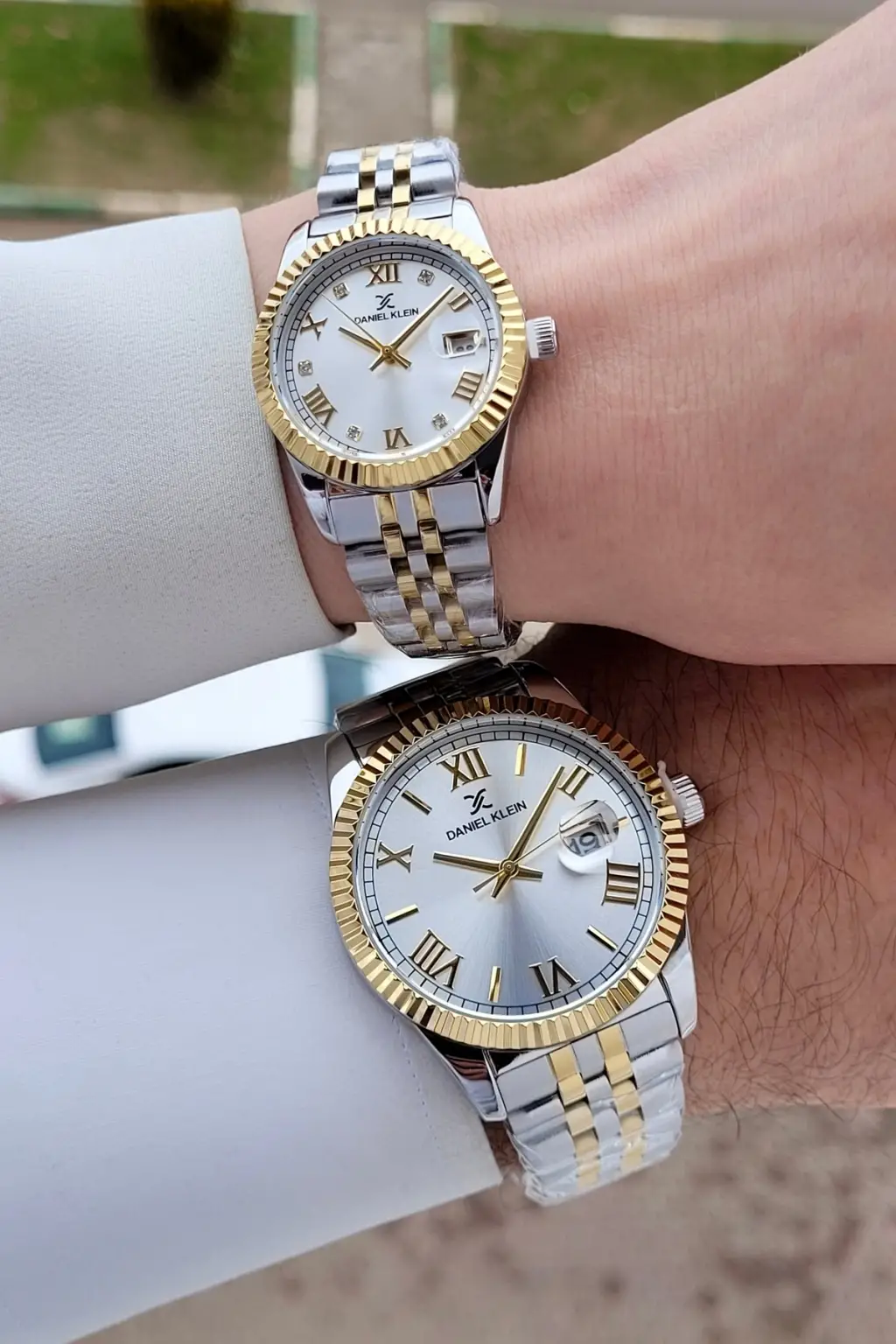 Kordonu Gold Gümüş Renk Hediye Paketli Sevgili Çift Kol Saati