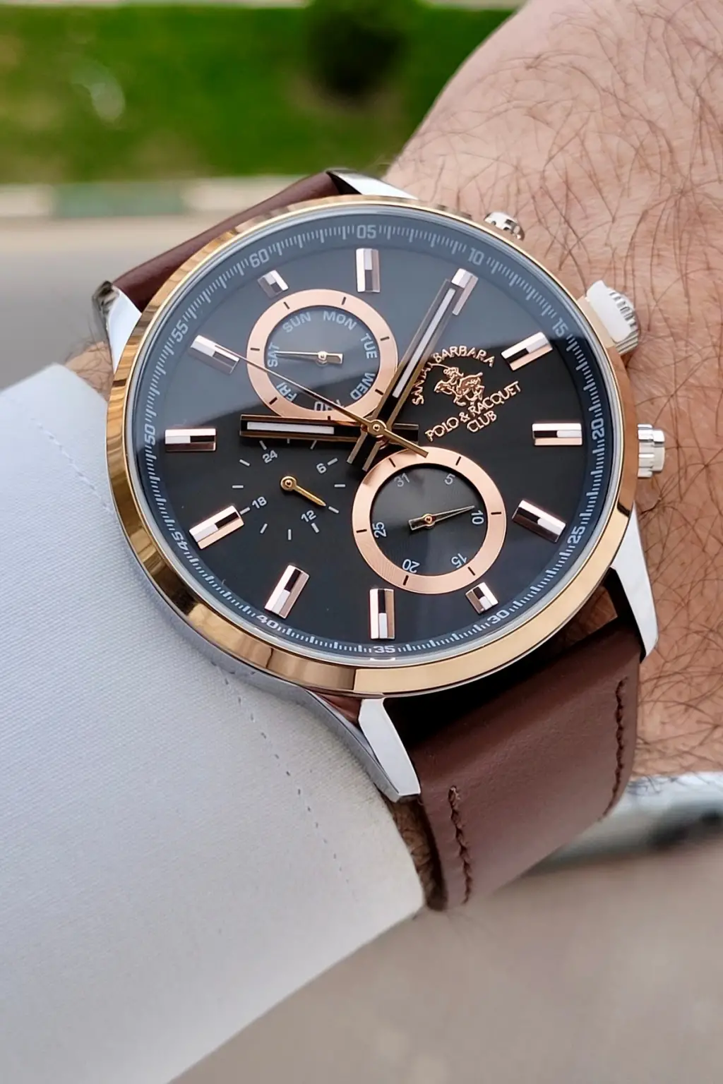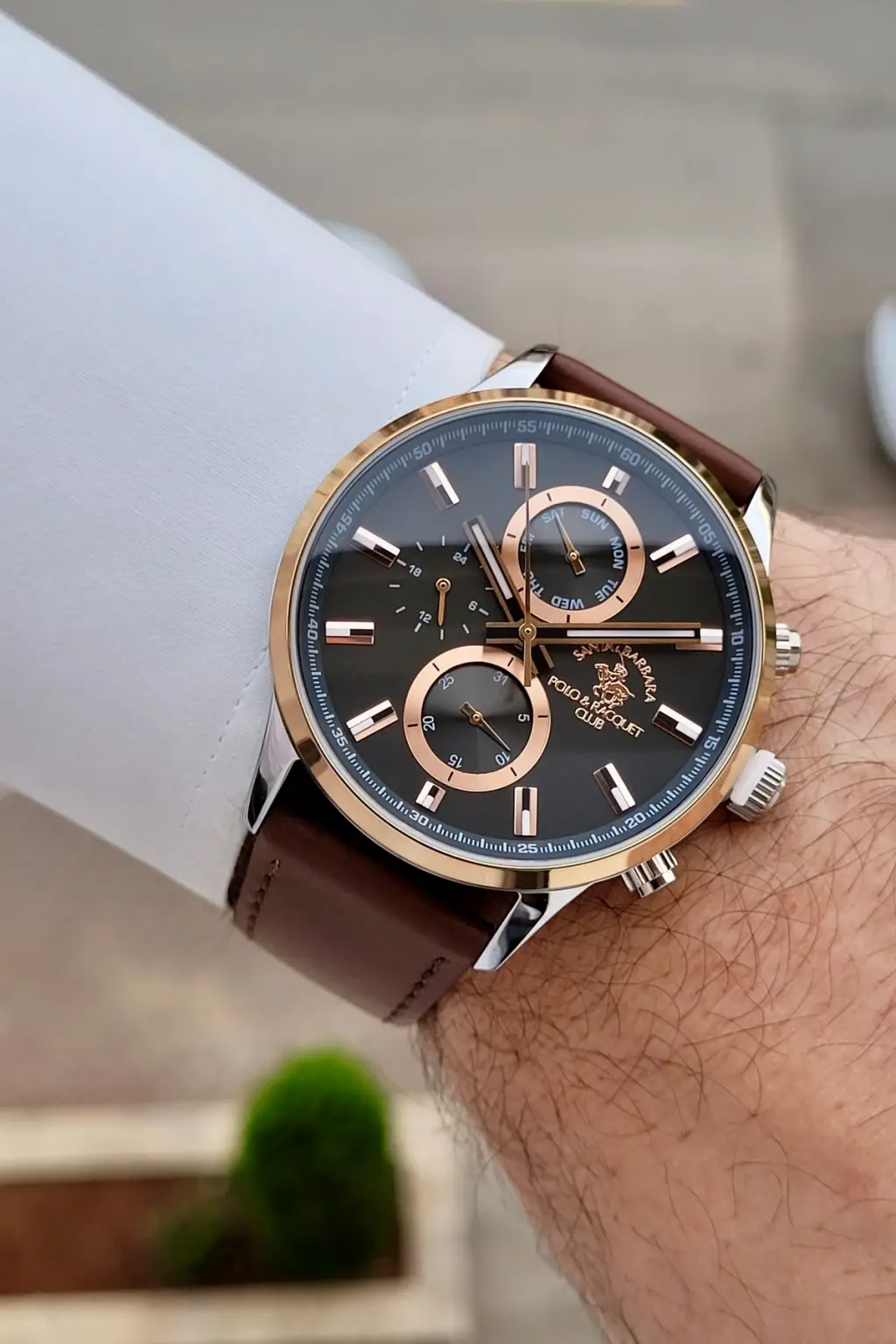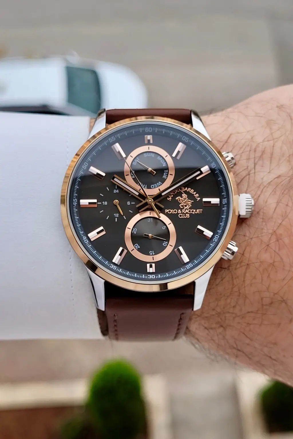 Santa Barbara Polo & Racquet Club Rose Gümüş Kahverengi Renk 44 mm Erkek Kol Saati