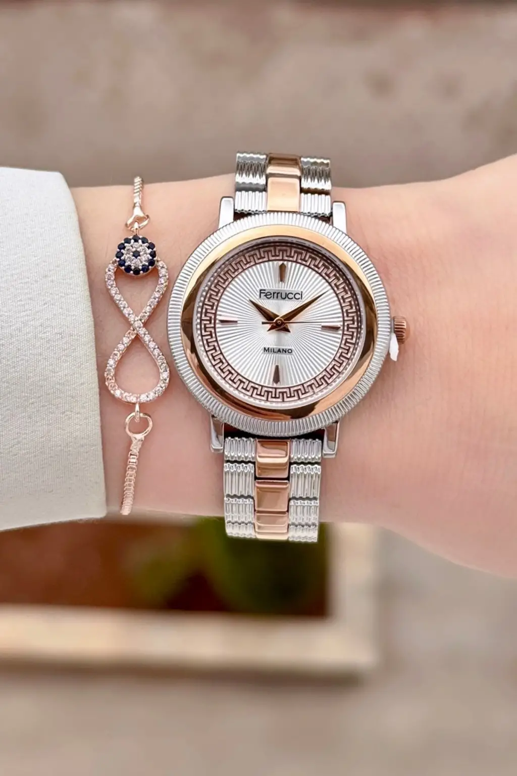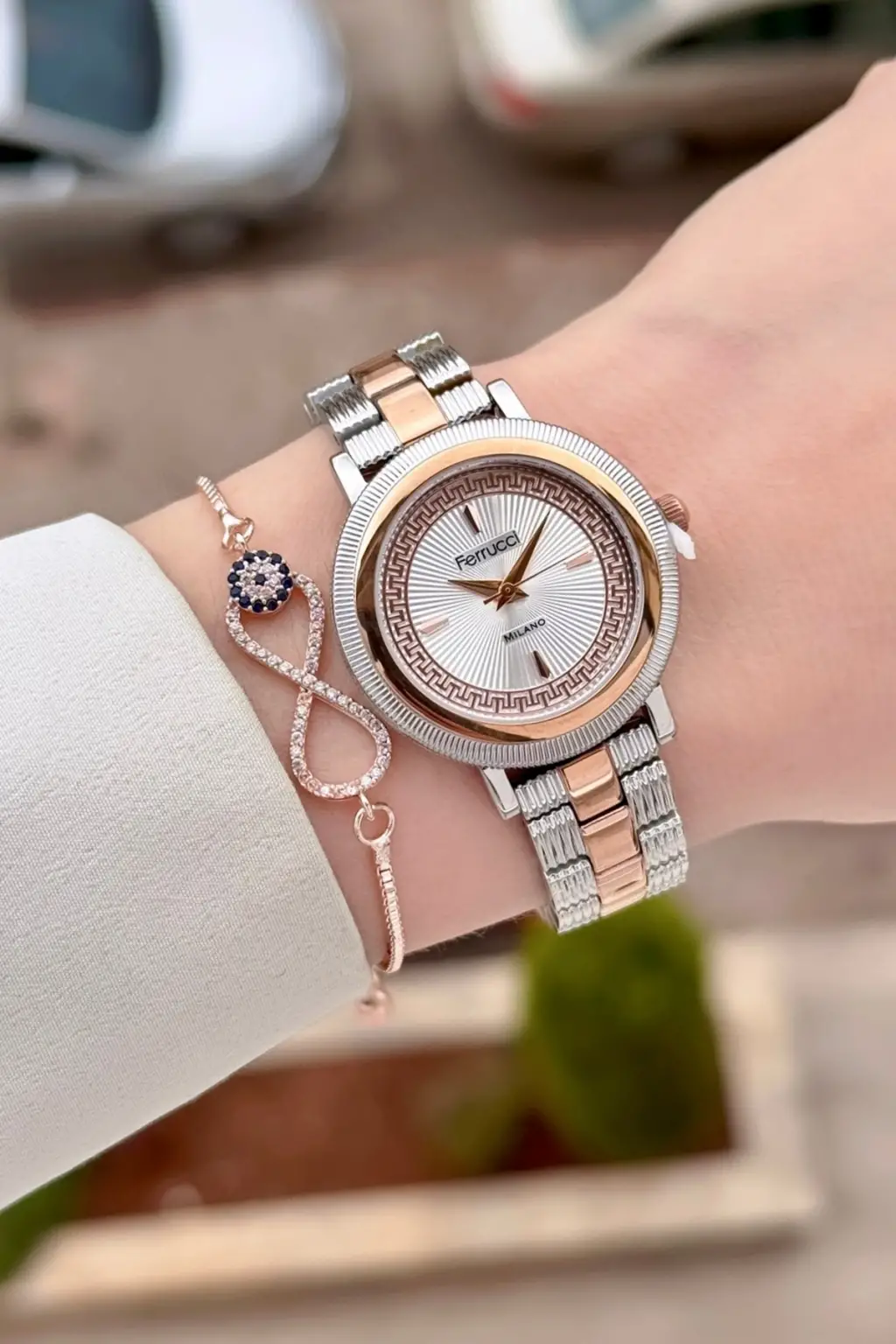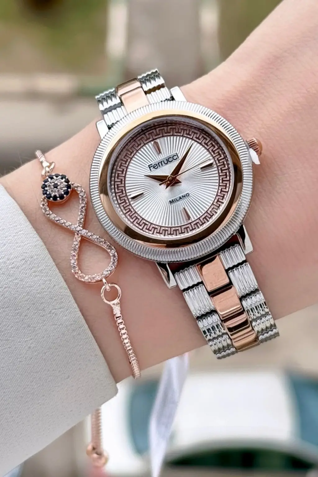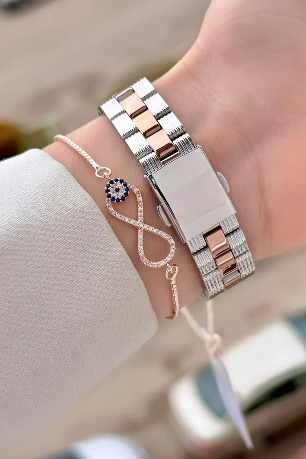 Rose Gümüş Renk Kadın Kol Saati ve Bileklik