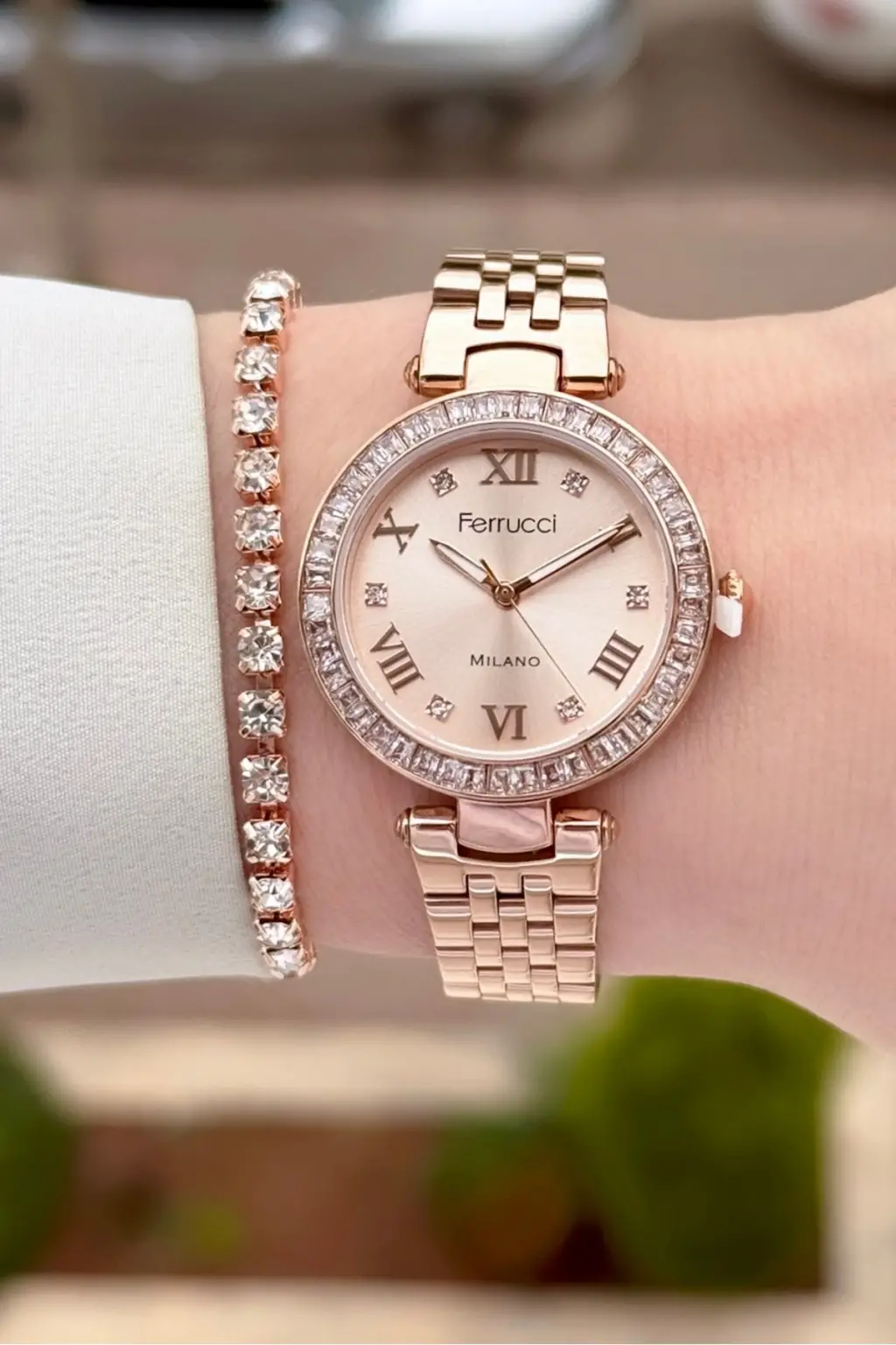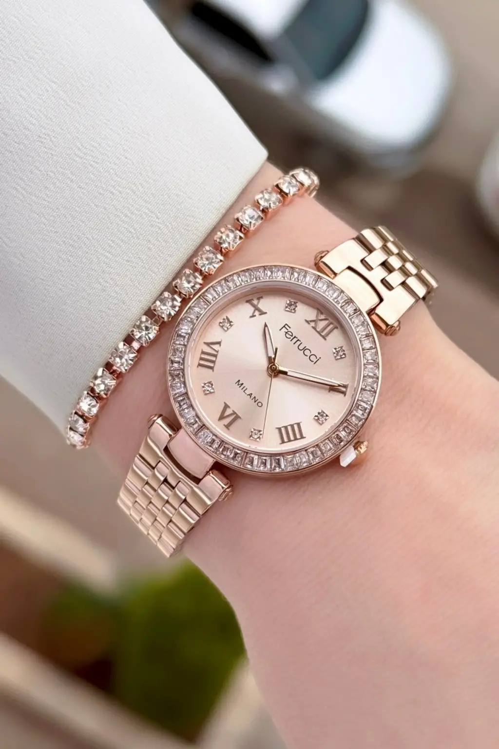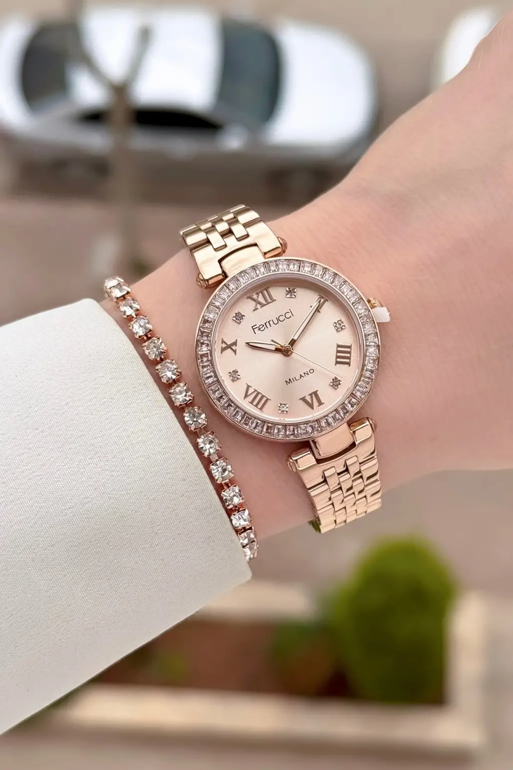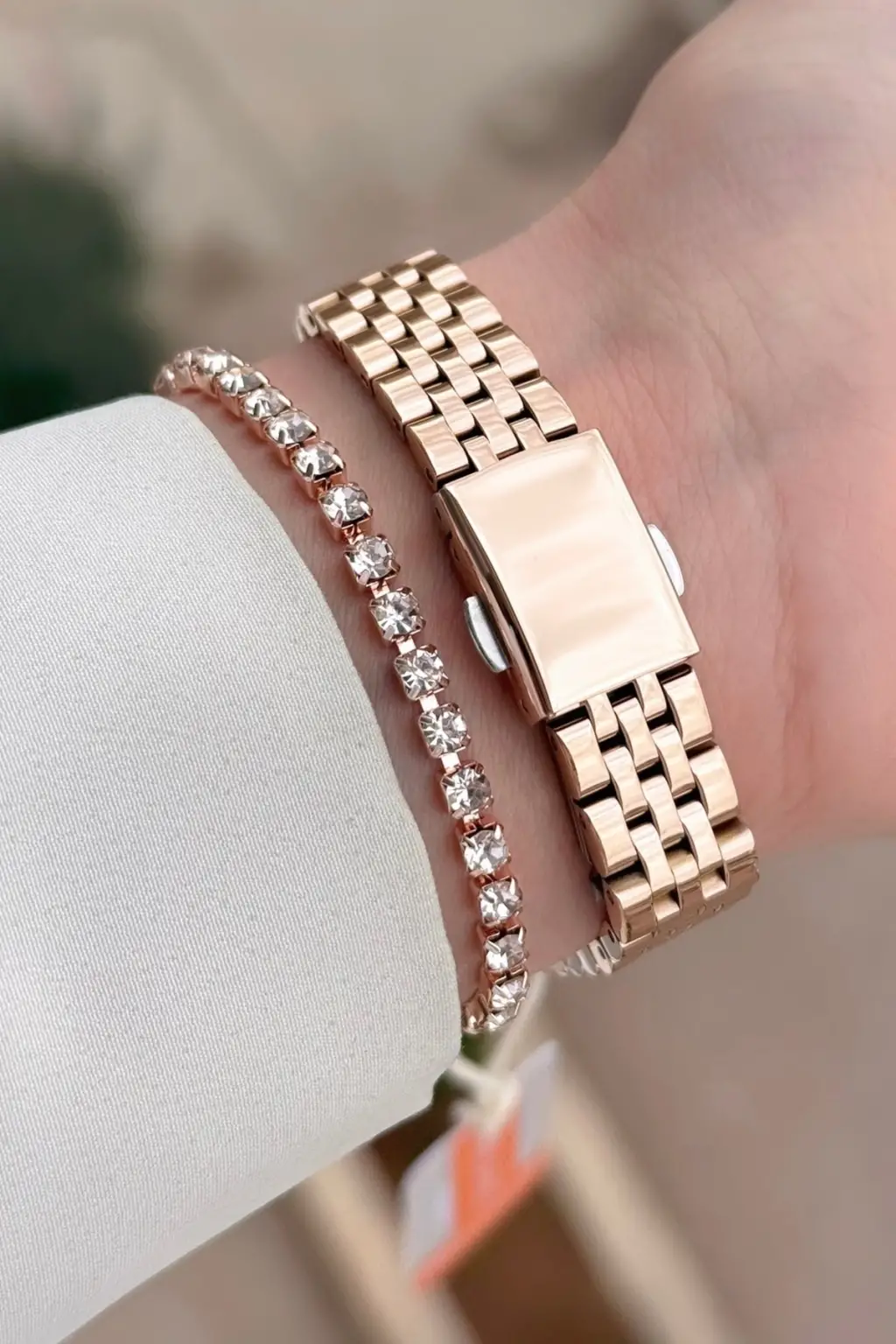 Rose Renk Kadın 30 Mm Kadın Kol Saati ve Hediye Bileklik