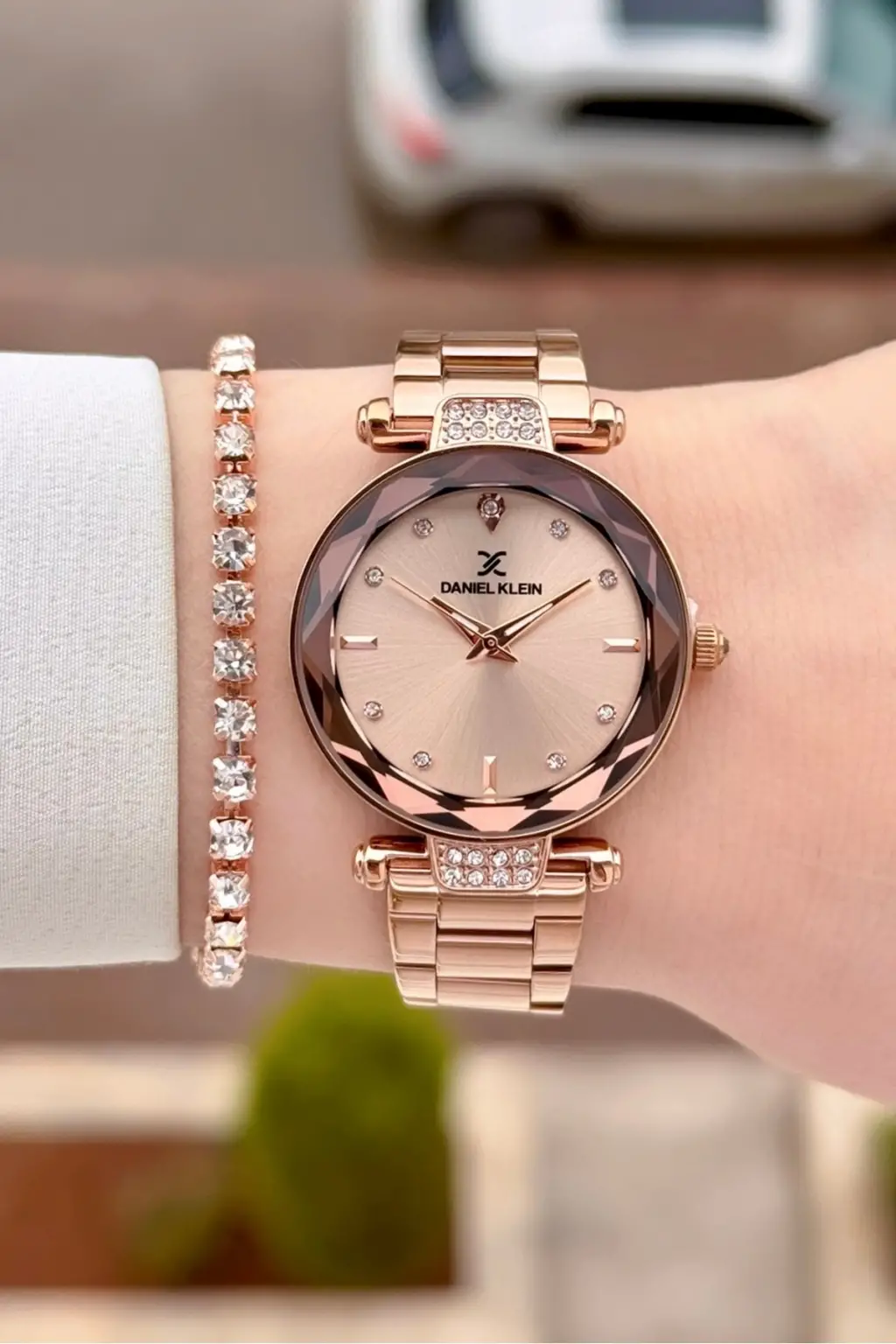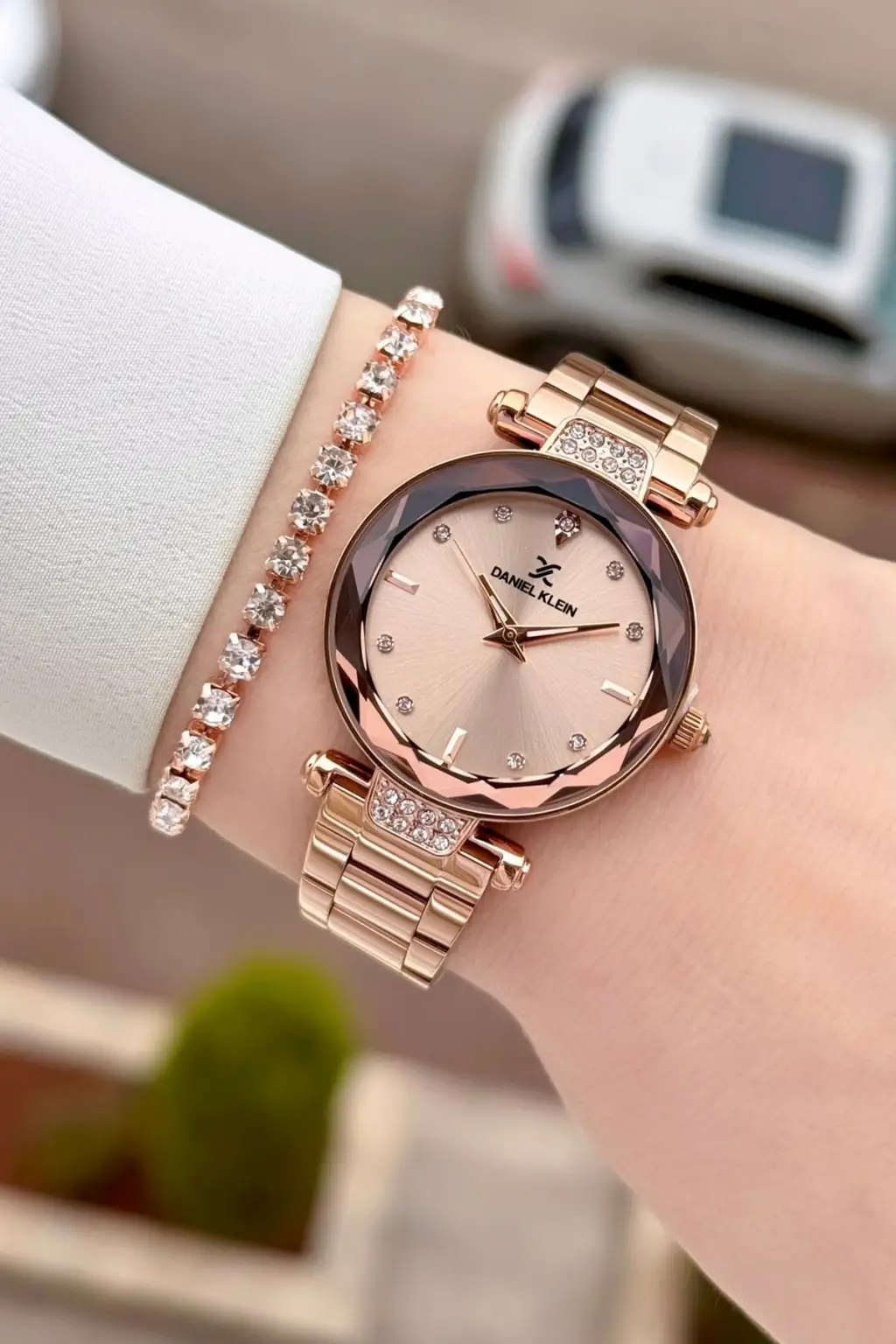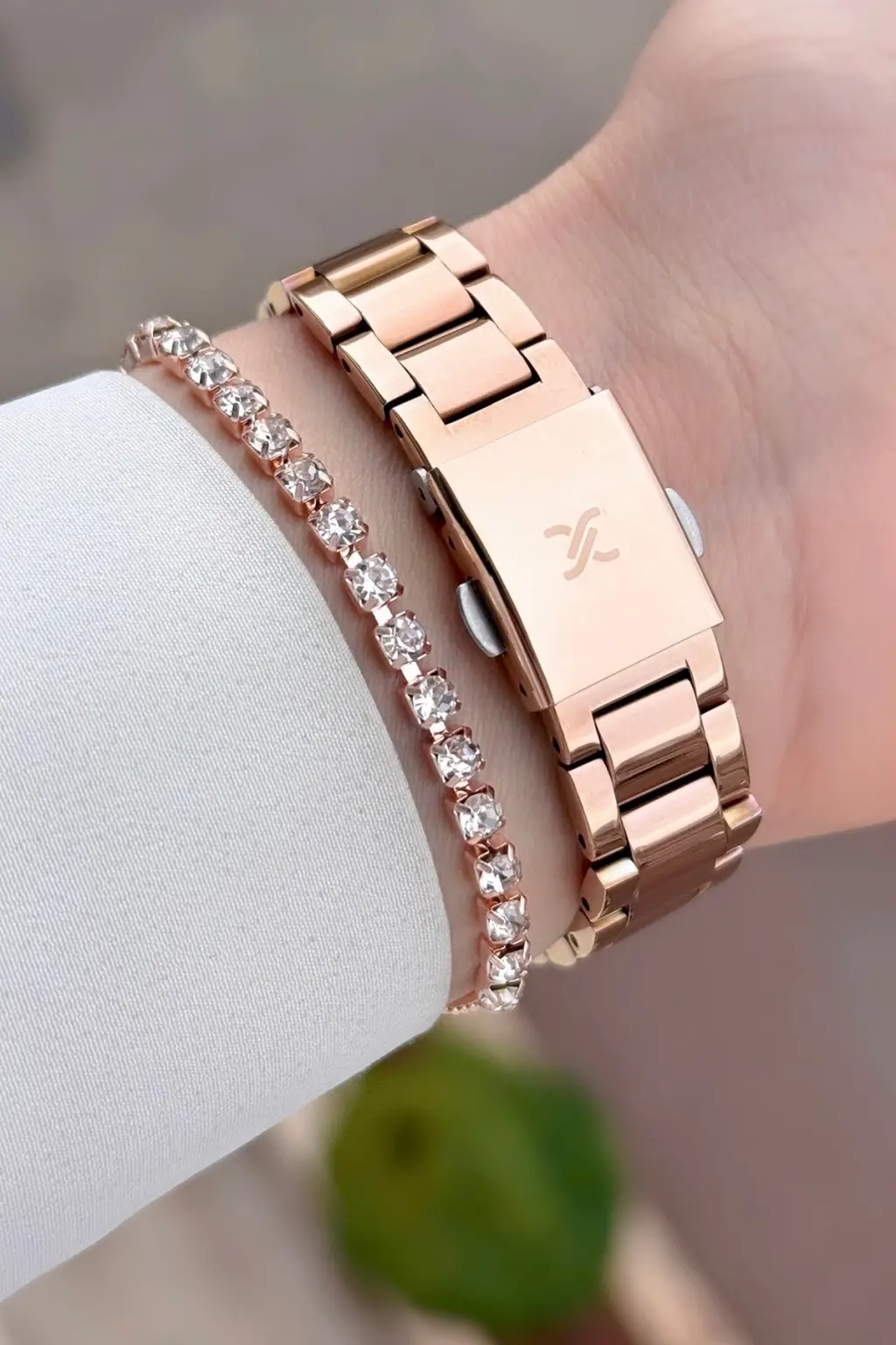 Rose Renk Kesme Camlı 32 Mm Kadın Kol Saati ve Bileklik