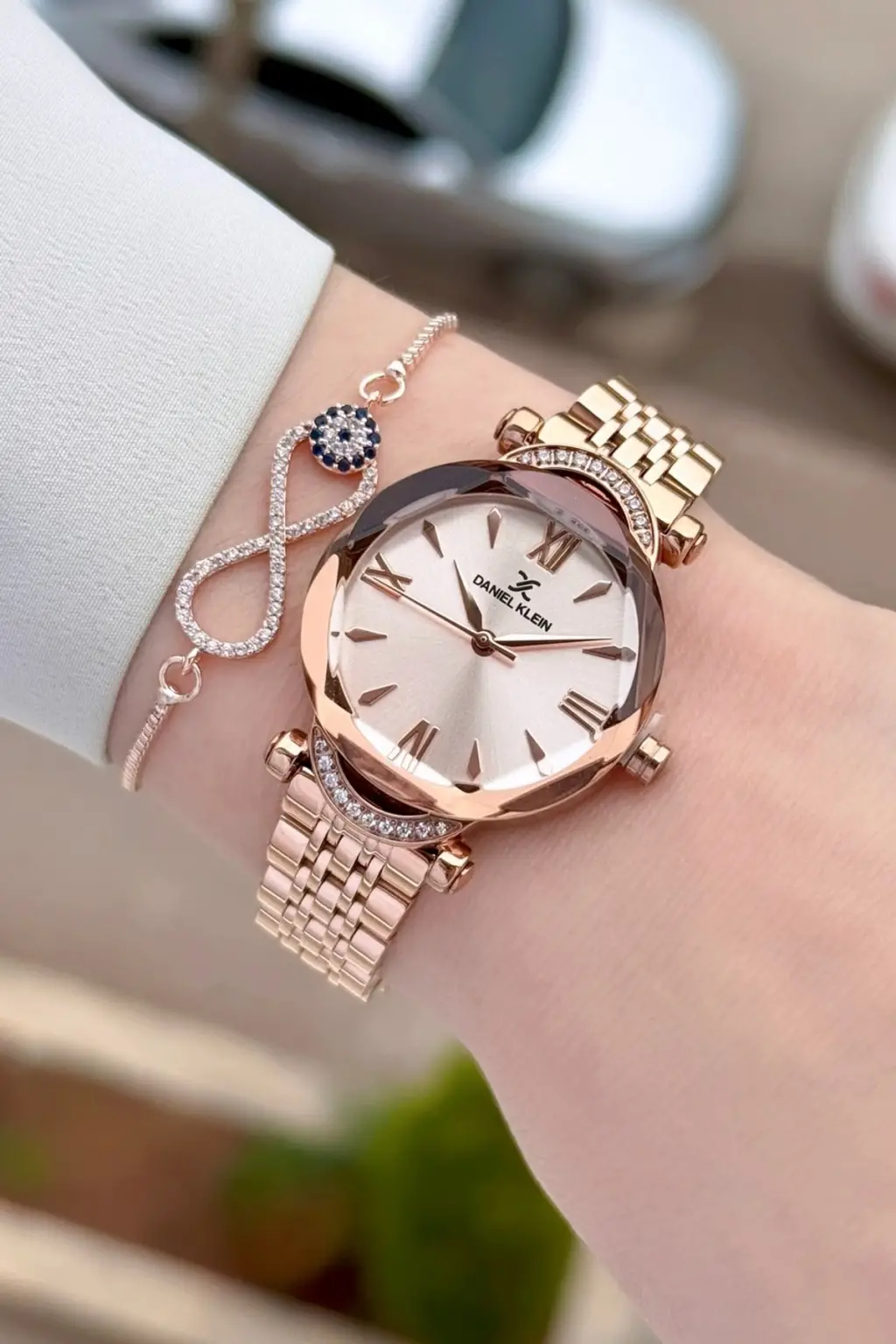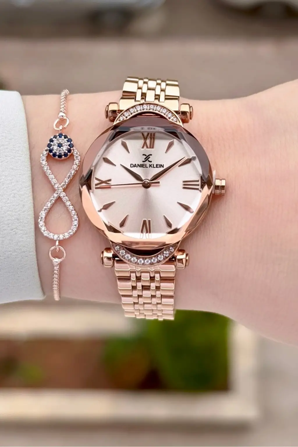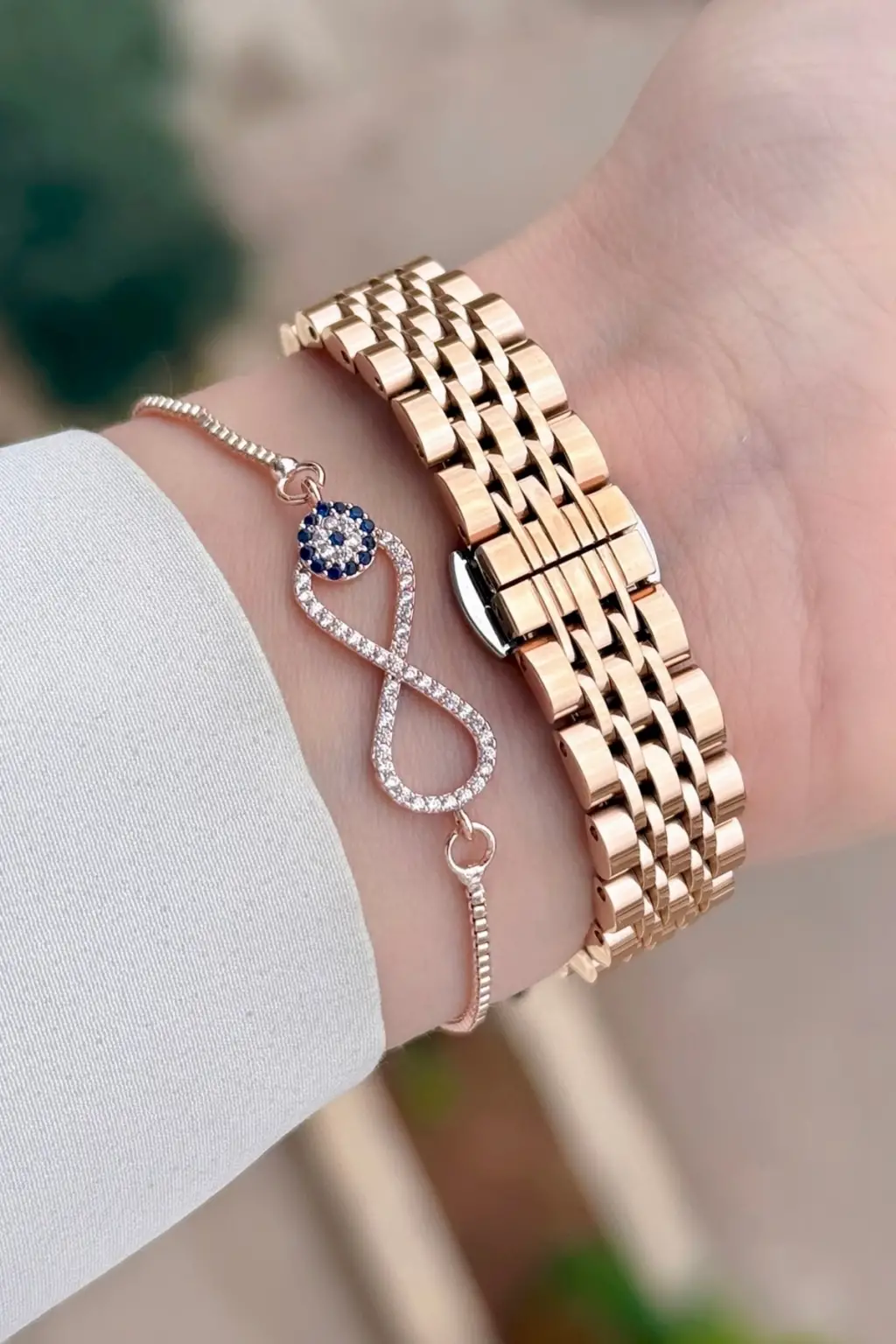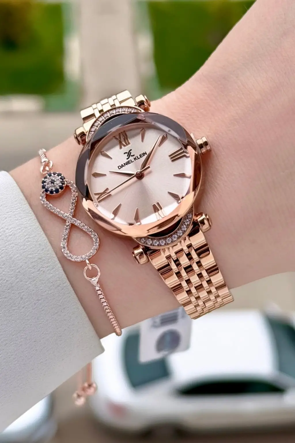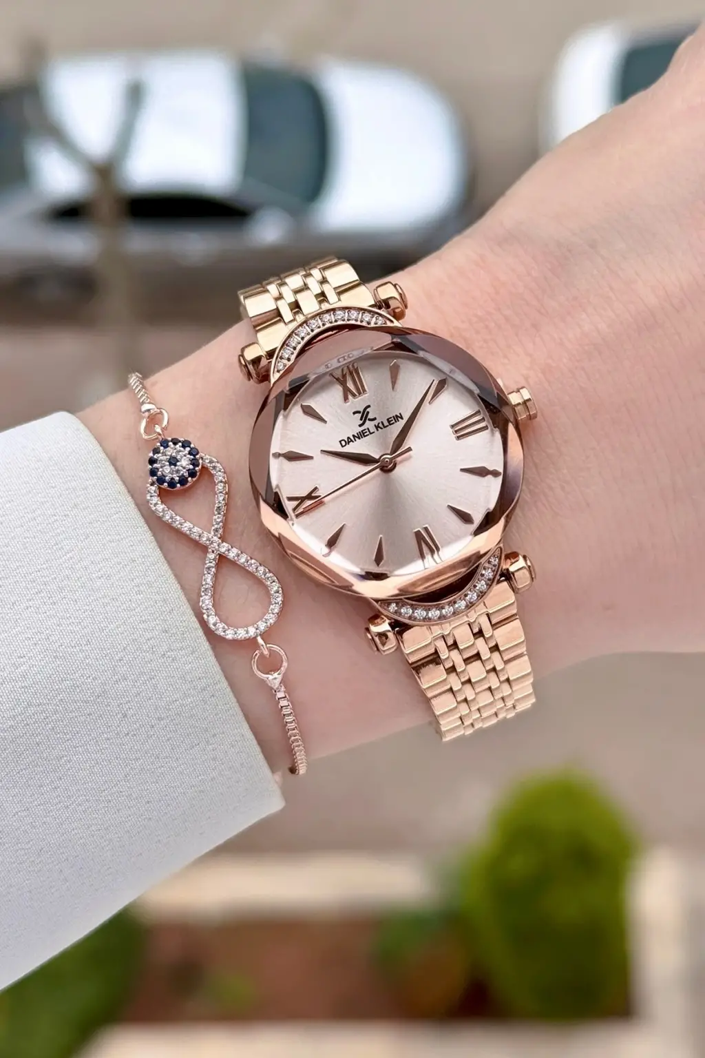 Rose Renk Kesme Camlı Kadın Kol Saati Ve Bileklik