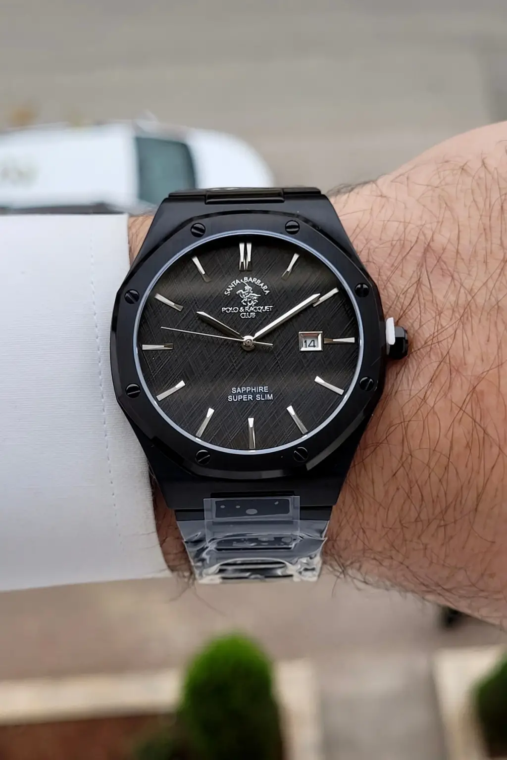 Siyah Renk 41 mm Renk Atmaz Oksitlenmez Çelik Erkek Kol Saati